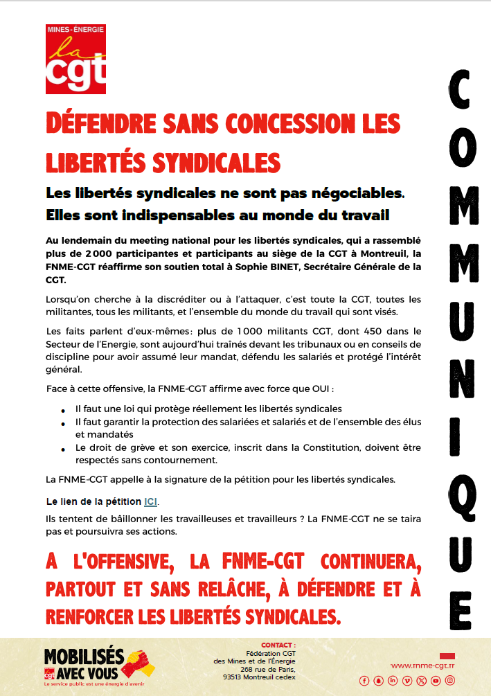 DÉFENDRE SANS CONCESSION LES LIBERTÉS SYNDICALES